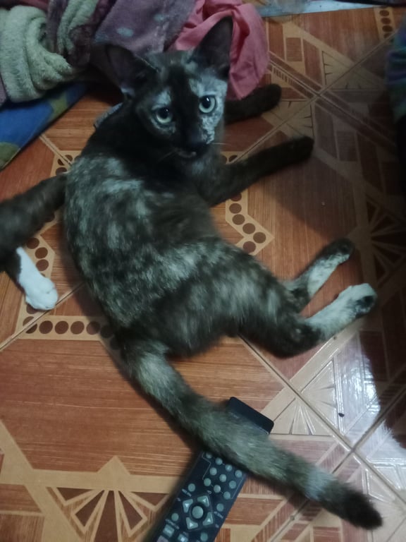 รอยตำหนิ: ขนสีเปรอะ ตัวเล็ก ชอบอ้อน ขาหลังมีถุงเท้า ขาหน้าน้ำตาลสนิท อุ้งเท้าสีดำมีปลอกคอสีชมพู ขี้อ้อน ดื้อมากชอบปีนป่าย ชอบหนีออกจากบ้านตอนคนเผลอ น้องชอบเที่ยวเป็นปกติ รักอิสระ กลางคืนน้องชอบนอนกับคน