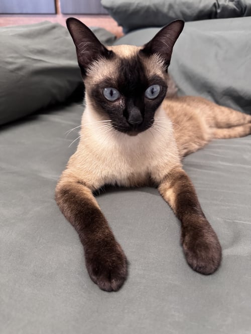 รอยตำหนิ: มีลายสลิดจางๆ ที่สะโพกขี้ตกใจมากๆ กลัวคนแปลกหน้าแต่ถ้ารู่จักแล้วจะอ้อนเก่งมาก ร้องเก่ง กินเก่ง นอนเก่ง