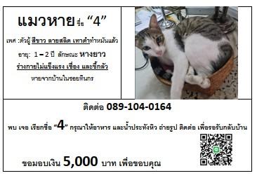 รอยตำหนิ: หายยาวมากเหมือนดาบ ตาด้านซเายเป็นทางเหมือนน้ำตาติดต่อ 0891040164 รางวัล 5000 บาท