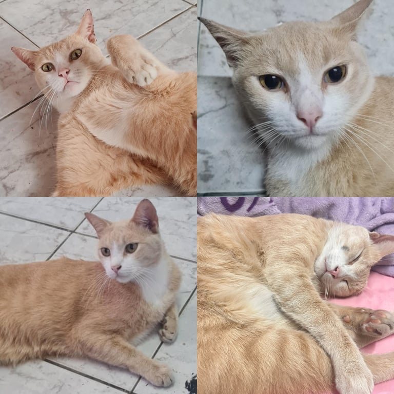 รอยตำหนิ: ตัวสีส้มอ่อนๆเนื้อ หางตรงปลายกุดนิดหน่อย ตาออกสีเหลืองอ่อนๆ มีไฝแถวปากสีดำกลัวเสียงฟ้าผ่าฟ้าร้อง