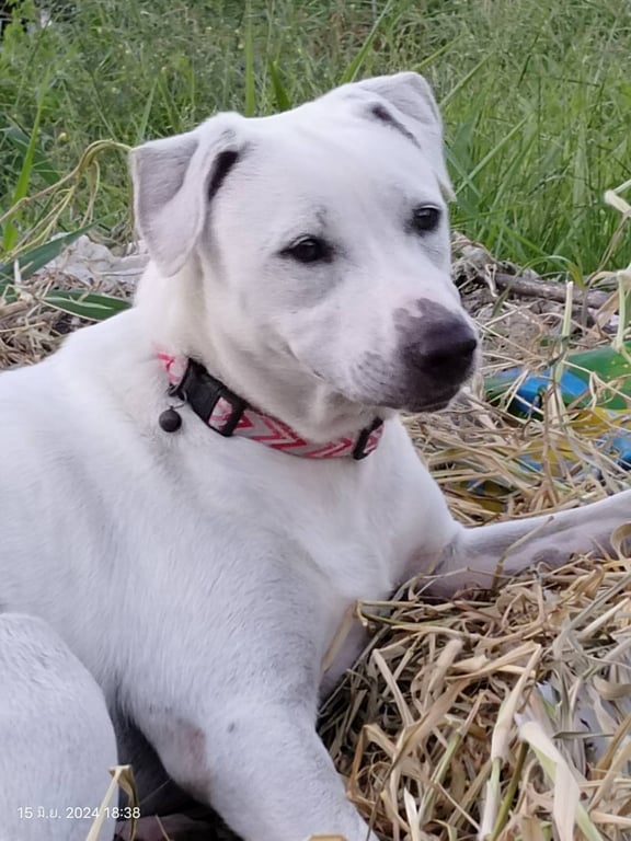 รอยตำหนิ: ขนตาขาว มีไหมจากการทำหมันยังไม่ได้ตัดบริเวณสีข้างซ้ายต้องมีนิสัยขี้กลัว ไม่ดูร้าย ชอบคน วันหายน้องไม่มีปลอกคอ
