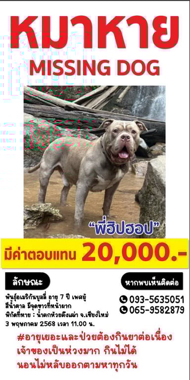 รอยตำหนิ: มีแต้มสีขาวที่หน้าผาก มีสีขาวที่หน้าอกขี้ร้อน ขี้ระแวง ขี้กลัว
