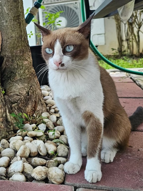 รอยตำหนิ: มัไฝใต้จมูกซ้าย มีติ่งเนื้อใบหูซ้าย ถุงเท้าขาว4ข้างขี้กลัว ไม่ยอมให้ใครจับ