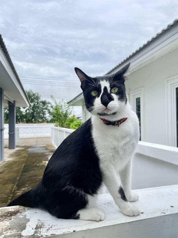 รอยตำหนิ: จมูกแด่นสีดำ คางดำ ตั้งแต่อกไปถึงท้องสีขาวล้วน มีแต้มสีดำที่ขาหน้าขวาเรียบร้อย อ้อนคนเก่งมาก ชอบหงายท้องให้เกาพุง น้องขี้กลัว ขี้ตกใจ จะกลัวหมามากเป็นพิเศษ