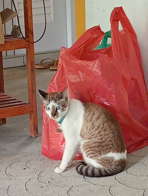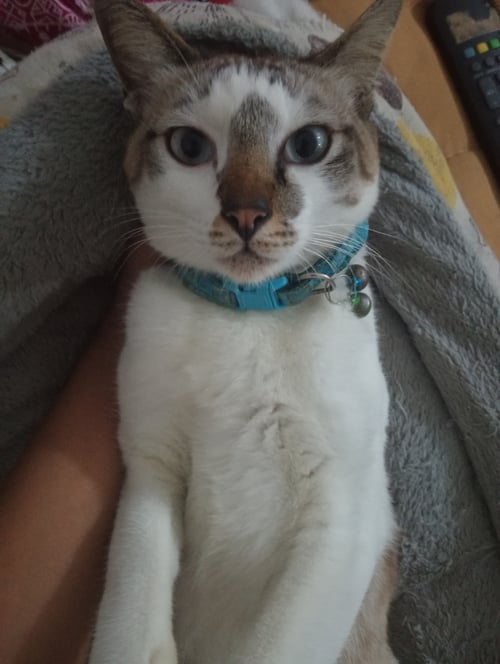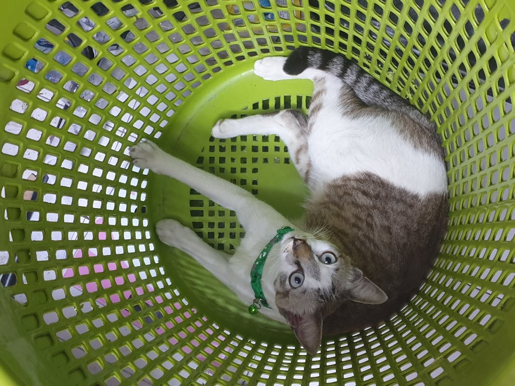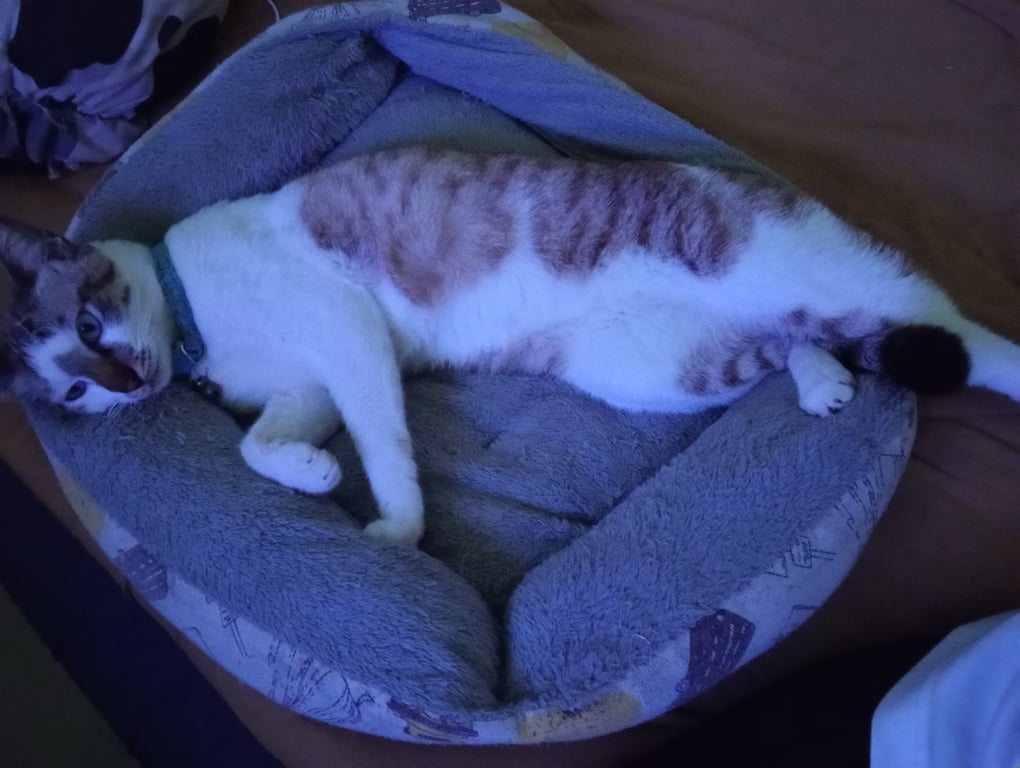รอยตำหนิ: ลำตัวสีขาว มีลายน้ำตาลเหมือนปลาเผา หางสีขาวแถบดำขี้เล่น น่ารัก ชอบนอน