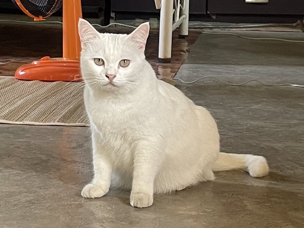 รอยตำหนิ: สีขาวล้วน ขาสั้น พุ่งย้อยขี้กลัว ไม่ค่อยเข้าหาคน