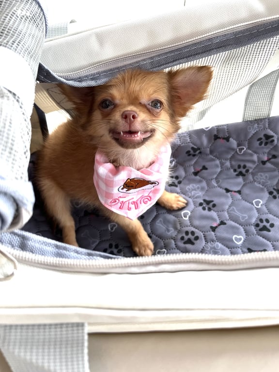 รอยตำหนิ: หูใหญ่ กลางหลังมีขนสีดำแซมๆ ยาวลงมา หางมีสีดำแซมๆ4 เดือน พันธุ์ ชิวาว่า น่ารัก ขี้เล่น เป็นมิตรกับคน ไม่ชอบสุนัขตัวอื่น เพราะชอบคน