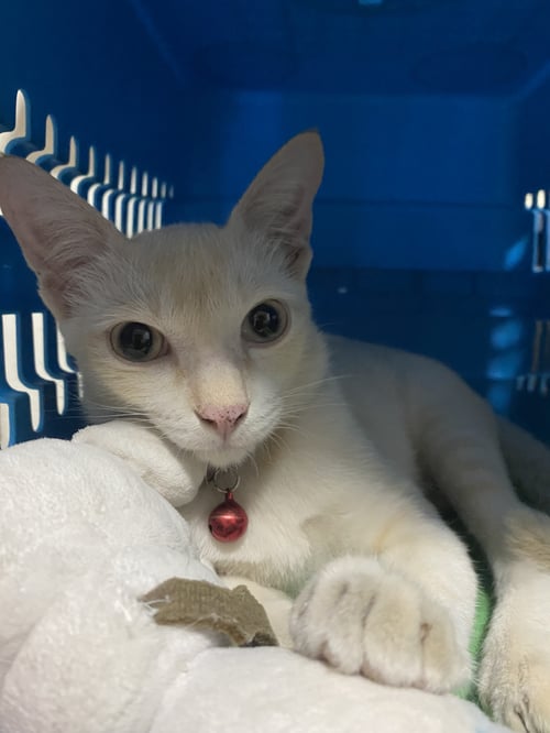 รอยตำหนิ: ตัวยาว หางยาว สีส้มครีม ห้อยปลอกคอกระดิ่งสีแดง จมูกมีกระนิสัยขี้อ้อน ไม่กลัวคน ชอบขึ้นไปนั่งในรถยนต์