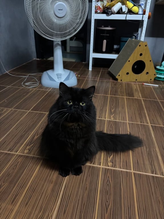 รอยตำหนิ: ขนยาวดำ ตาสีเหลือง ดั้งไม่มีนิสัยขี้กลัว มอบต่ำเวลาเดินวิ่ง เพราะน้องไม่เคยออกไปไหน จะกลัวคน ต้องใช้เปียกหรือแมวเลียหลอกหล่อ