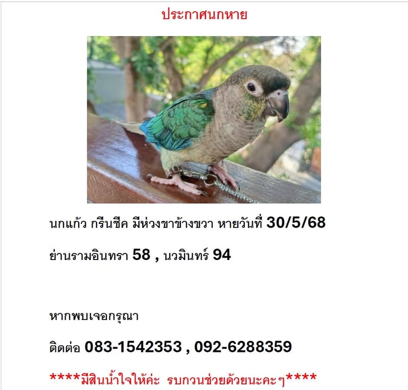 รอยตำหนิ: ปีกขนด่างดำ มีห่วงข้างขวาเชื่อง ติดคน