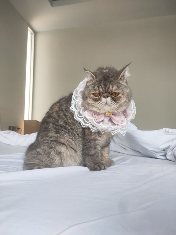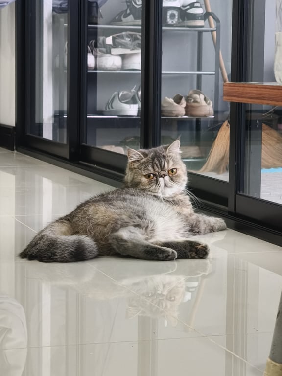รอยตำหนิ: มีขนครีมจุดใหญ่อยู่บนศรีษะขี้กลัว ไม่ชอบเสียงดัง ไม่ชอบให้คนอุ้มหรือจับตัว