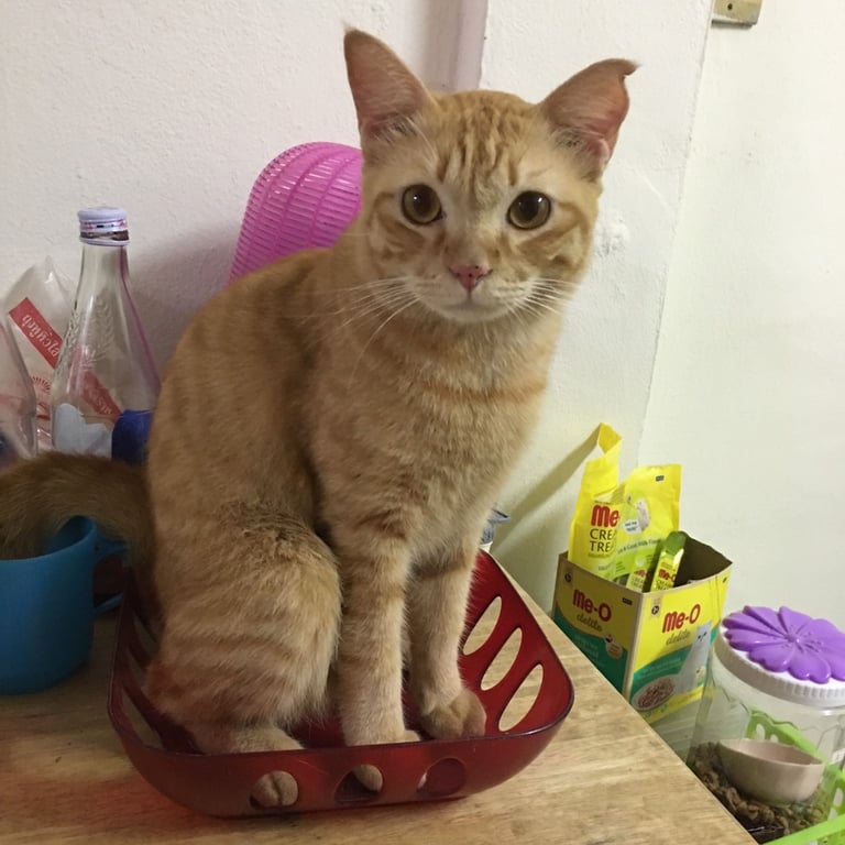 รอยตำหนิ: หูซ้ายมีรอยหยิก,ขาด | จมูกมีกระดำสีส้มเข้มทั้งตัว นิสัยเฟรนลี่เป็นมิตรกับคน เชื่อง ไม่ค่อยร้อง ขี้อ้อน