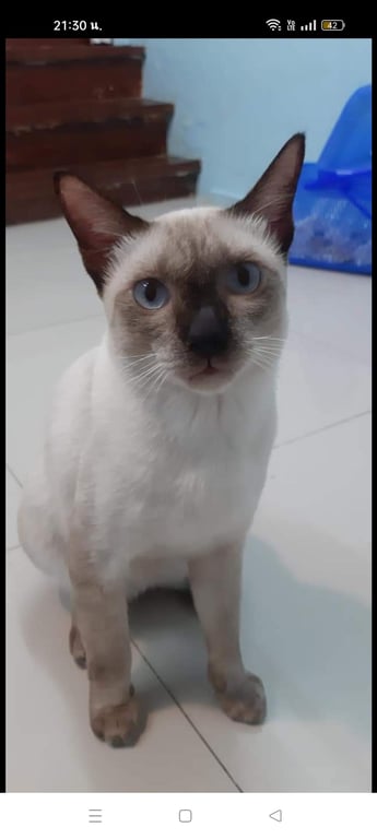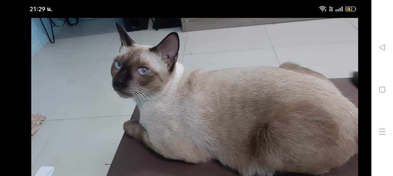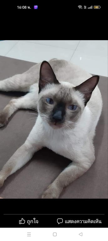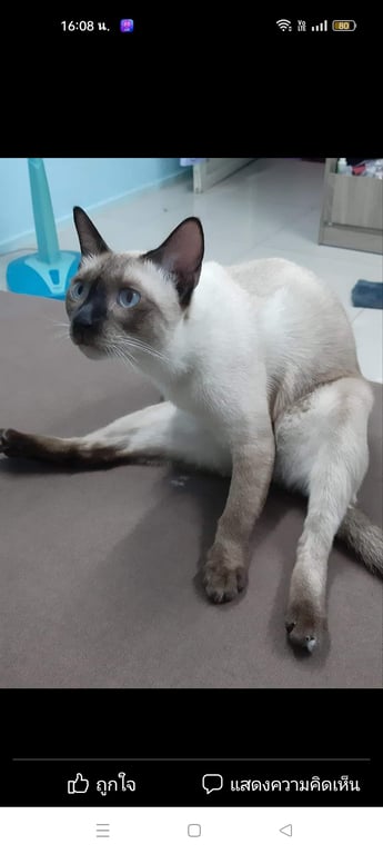 รอยตำหนิ: จุดสีขาวที่นิ้วเท้าขาหลังข้างซ้ายสวมปลอกคอสายสีชมพูป้ายชื่อแต้มสีฟ้ามีเบอร์โทรเจ้าของ