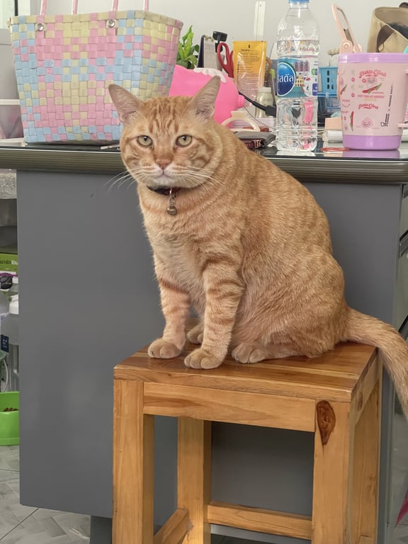 รอยตำหนิ: หูข้างซ้ายมีรอยแหว่งนิดนึง หางยาวปลายหางงอเล็กน้อยกลัวคนแปลกหน้า อาจจะไม่ให้จับถ้าไม่คุ้น