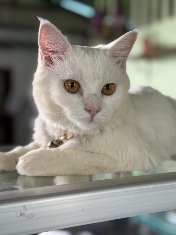 รอยตำหนิ: ปลายหางหักไม่เยอะสัมผัสได้น้องมีหูชมพูถึงข้างแก้ม ในตาข้างขวาเปือกตามีลอยไม้ทิ้มเป็นแผลเป็นสังเกตุเห็นด้วยตาเปล่า น้องไม่มีปลอกคอ เขี้ยวน้ำล่างด้านขวายังไม่หลุด ขึ้นคู่กัน 2 ซี่