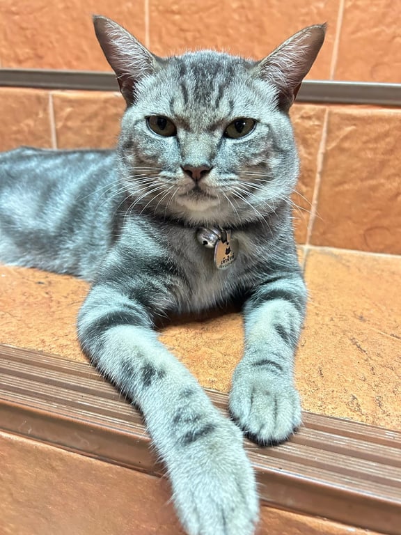 รอยตำหนิ: ลายสลิด สีลายแนวยาว ตัวอ้วน ขนนิ่มๆ กลัวคน กลัวเสียงดัง