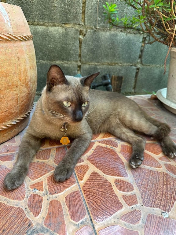 รอยตำหนิ: หางตรง หน้าดำ หางดำ หูดำ เท้าดำ(มีแซมสีขาวเล็กน้อยตรงเล็บเท้าหลังขี้อ้อน มึนๆ ดื้อ ติดบ้าน