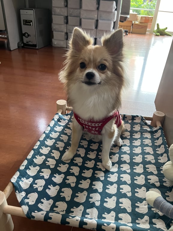 รอยตำหนิ: เส้นแบ่งกลางหัว กระจุกขนสีขาวลำคอด้านหลัง ปลายหางแซมสีดำ ขาหน้า แผงคอสีขาวขี้กลัวมาก ติดเจ้าของ กินยาก