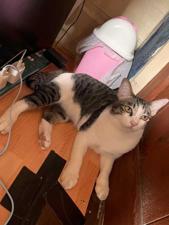 รอยตำหนิ: หางตัด ท้องขาว หลังลายสลิดอุ้มชอบกางเล็บ ชอบให้เกาคาง ตัวอ้วน