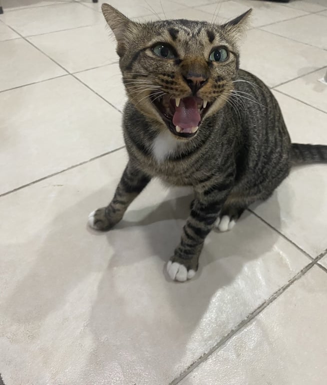 รอยตำหนิ: ตาสีเขียว มีถุงเท้าดุ ขี้กลัว ขี้ตกใจ
