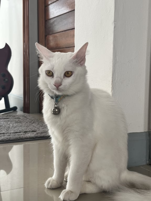 รอยตำหนิ: หางตรงพวง ตาสีเหลือง ปลอกคอสีฟ้า สีขาวทัังตัว ใบหูอมชมพูเล็กน้อยหนีออกไปจากบ้านกลางดึกคืนวันที่ 31 ระแวกหมู่บ้านตะวันฉาย คลองแห หาดใหญ่ ใกล้ตลาดฟุกเทียน นิสัย ขี้กลัว ไม่ดุร้าย ไม่ค่อยส่งเสียง