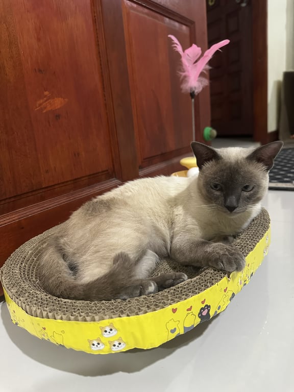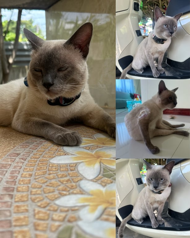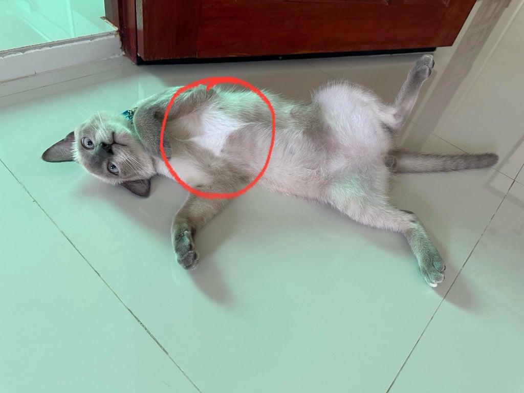 รอยตำหนิ: รอยแผลหัวไหล่ด้านขวา อกมีสีขาวค่อนข้างขี้ระแวง กลัวคนแปลกหน้า ถ้าสนิทเรียกชื่อน้องจะนอนหงายท้อง น้องไม่ค่อยแข็งแรง เหนื่อยง่าย หายใจเร็ว