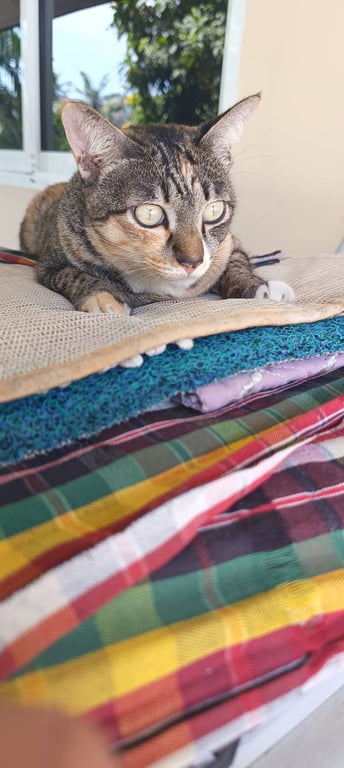 รอยตำหนิ: คล้ายแมวสลิด น้ำหนักตัวท้วม บริเวณคอเป็นสีขาว