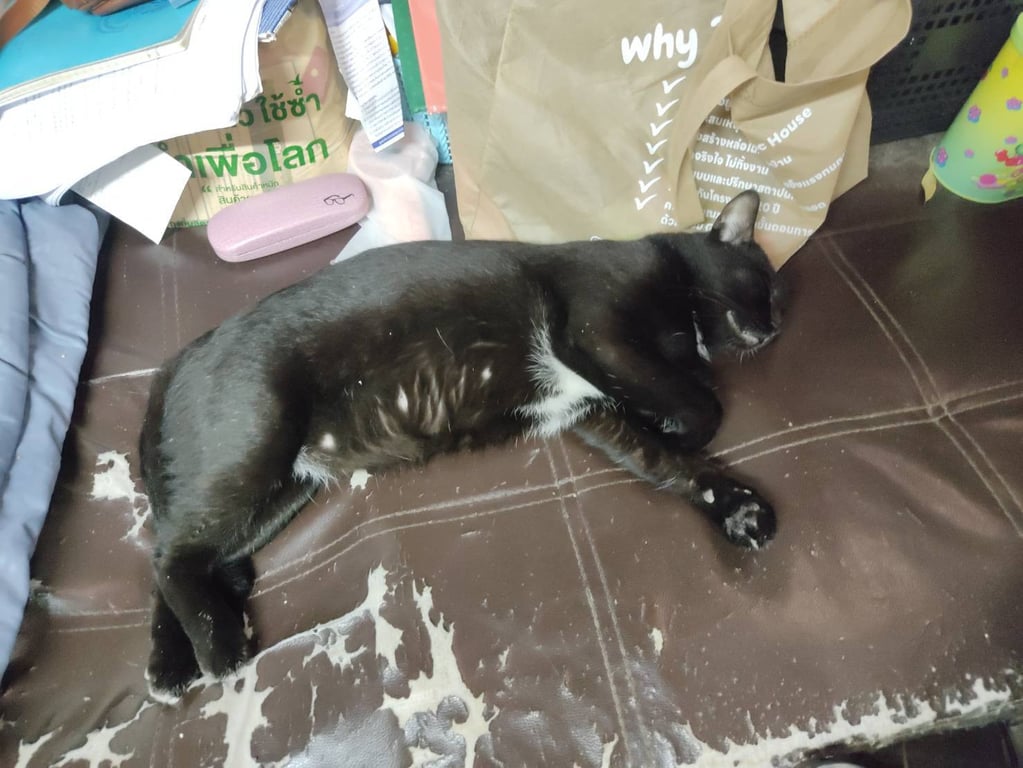 รอยตำหนิ: มีสีขาวบริเวณอก และท้อง เท้าหลังซ้ายหุบเล็บไม่ได้น้องตัวอ้วน หน้าอกและท้องสีมีขาว หนักประมาณ 6-7 กก. มีโรคประจำตัวโรคนิ่ว นิสัยขี้กลัวคน ถ้าได้ยินเสียงกระดิ่งจะเข้าหาเพื่อขอกินอาหารเปียก