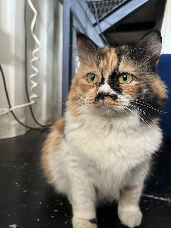 รอยตำหนิ: มีขนสีดำแซมๆตรงใต้จมูกกินเก่ง ชอบขออาหาร ชอบเดินมาดูคน