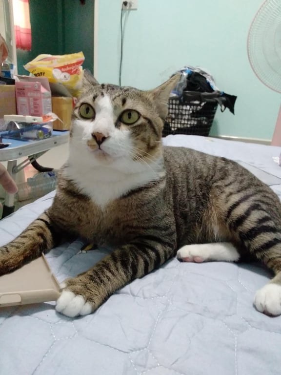 รอยตำหนิ: หางคต งอม้วนเป็นแมวสีสลิด หน้าขาว ตรงอกมีสีขาว กับตรงข้อเท้ามีสีขาว หางคต เป็นแมวติดคน ขี้อ้อน ชินคน