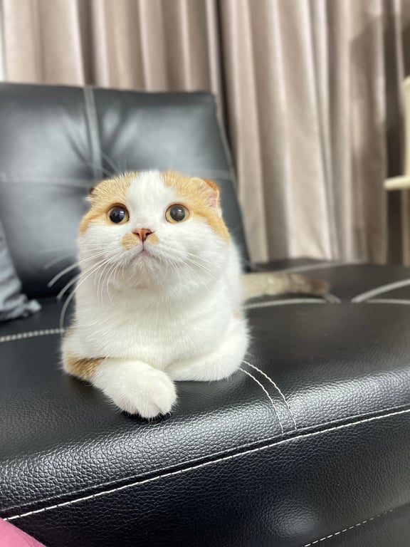 รอยตำหนิ: จมูก 2 สี มีสีส้มที่จมูกไม่กลัวคน รู้ชื่อตัวเอง แต่เรียกไม่มา ชอบกินอาหารเปียกเน็กโกะ ขนมแมวเลีย vf-core ชอบกินนม และขนมหวานคน ชอบนอนหงายพุง