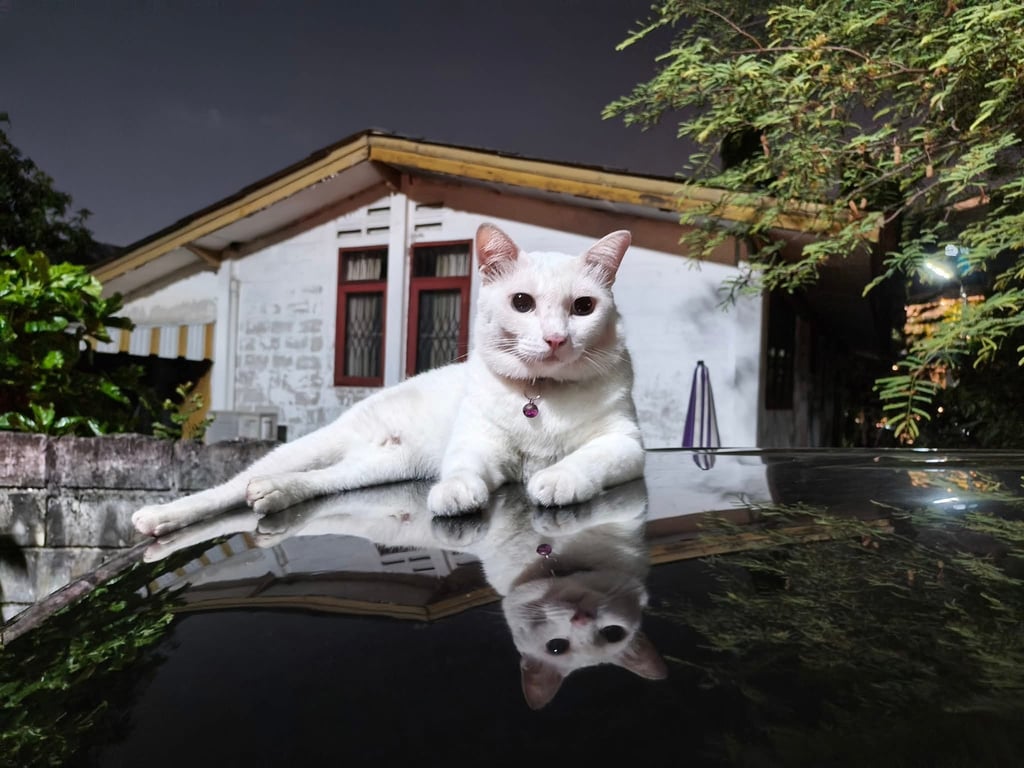 รอยตำหนิ: สีขาวล้วน ตาสีฟ้า และเหลือง หน้ากลม ตาโดนไฟส่องตอนกลางคืนตาจะสีแดงขี้อ้อน แต่ไม่ให้คนอื่นจับ
