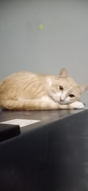 รอยตำหนิ: ตัวสีออกครีมใตท้องสีขาวปอกคอสีแดงน้องขี้กลัวแต่ไม่ดุเวลาเจอคนอาจจะอ้อนบ้างไม่อ้อนบ้างแล้วแต่อารม