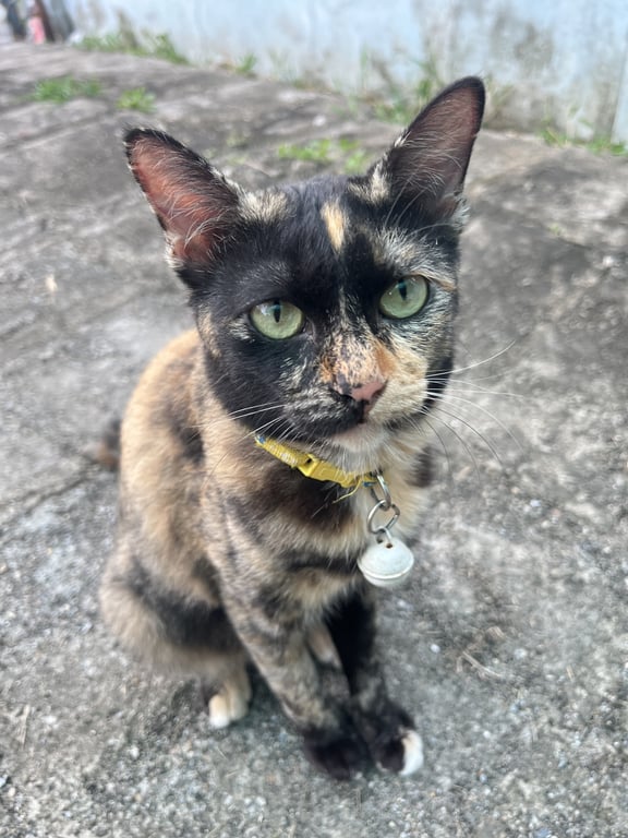 รอยตำหนิ: หางสั้นกว่าปกติ หน้าดำติดส้มแถวปากด้านขวา และขีดกลางหน้าผากน้องเลี้ยงแบบกึ่งปิดค่ะ มีไปเที่ยวบ้าง กลับบ้านเป็นเวลาตลอดค่ะ นิสัยขี้กลัว ซ่อนตัวเก่ง ไม่ไว้ใจใครง่ายๆ ตัวอ้วนๆ เดินเบามากแทบไม่ได้ยินเสียงกระดิ่ง ปลอกที่ใส่ล่าสุดเป็นสีชมพูค่ะ