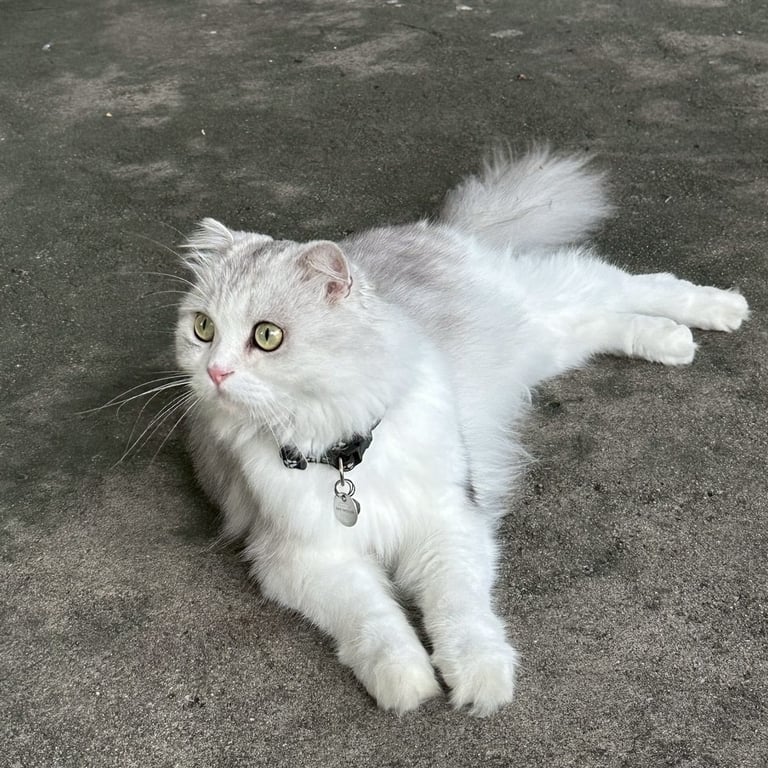 รอยตำหนิ: น้องใส่ปลอกคอมีชื่อมาแชลและเบอร์โทร(ไม่รู้ว่าตอนนี้จะยังติดตัวอยู่มั้ย) สีขนลายเทาๆดำๆ ช่วงไหล่ หลัง สีขนช่วงไหล่จะเทาดำเข้มเป็นพิเศษ และหัว ช่วงจมูกและปากเป็นสีขาว ขนช่วงด้านหน้า อกสีขาวๆ นัยตาแอบออกน้องใส่ปลอกคอ ชื่อมาแชลและเบอร์ 089 1415209 น้องไม่ดุไม่กัด นิ่งๆ ไม่ได้เข้าหาคนนัก ไม่ค่อยอ้อนมาก ยกเว้นช่วงเวลาหิวกับตอนที่คุณแม่กลับมาบ้าน ถ้าไปต่างที่คิดว่าน่าจะกลัว ตื่นเต้นทุกครั้งที่ขึ้นรถถ้าไม่ได้อยู่ในระเป๋า ระแวงค่ะ