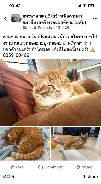 รอยตำหนิ: ด่างขาวที่จมูก ขนที่ท้องสีขาวขี่เล่น ชอบนอนหงายโชว์พุง