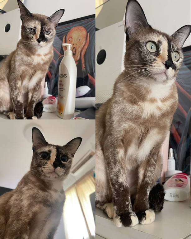 รอยตำหนิ: หน้ากลางจมูกเป็นบากสีดำค่อนข้างดุ ขี้กลัว ไม่มีปลอกคอ
