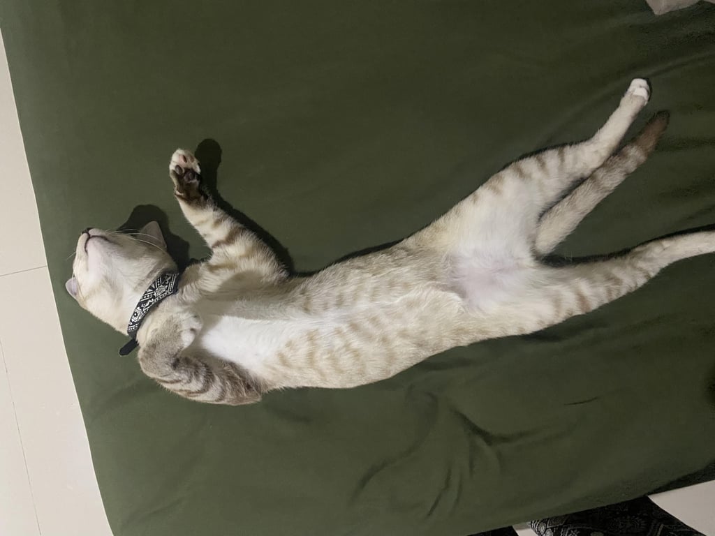 สี: น้องสีขาวออกไปทางเทามีลายสลิด