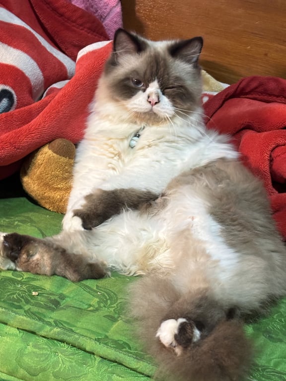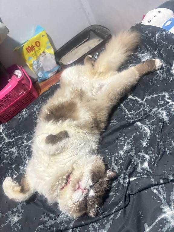 รอยตำหนิ: น้องตาสีฟ้า หน้าเป็นแมวทากันแดดไม่ทั่วหน้ามีหน้ากาก11เดือน น้องเป็นแมวขี้อ้อนมากๆค่ะ แต่น้องกลัวคนแปลกหน้าไม่ไห้อุ้มไม่ไห้จับเลยค่ะ