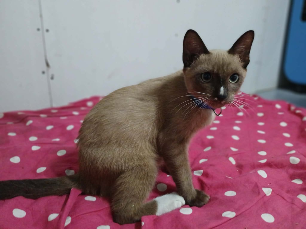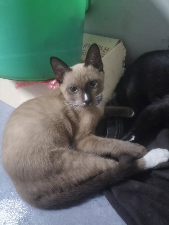 รอยตำหนิ: น้องเป็นแมวสีสวาทแต่จมูกจะเป็นจุดขาวกับถุงเถ้าขาวขาหลังคะ7เดือน