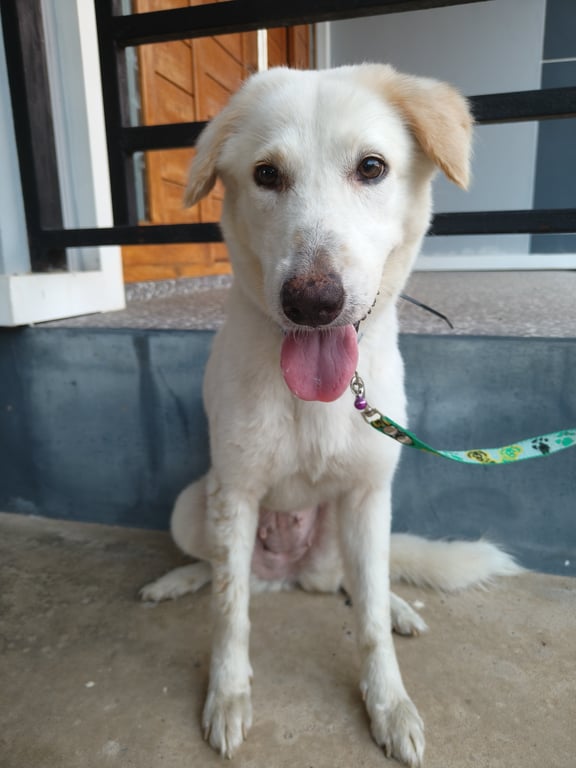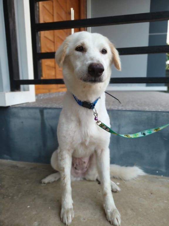 รอยตำหนิ: ใส่ปลอกคอสีน้ำเงิน สายจูงสีเขียวขี้กลัวมาก