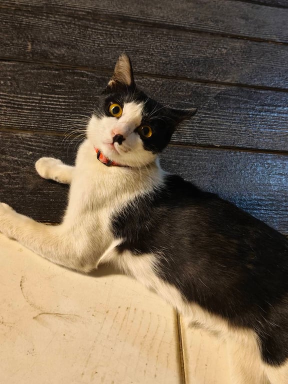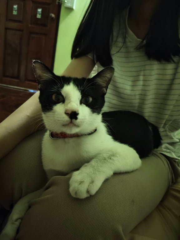 รอยตำหนิ: ขาวดำขาวดำลายวัว มีจุดดำที่จมูกด้านขวากินเก่ง ขี้กลัว ขี้ตกใจ