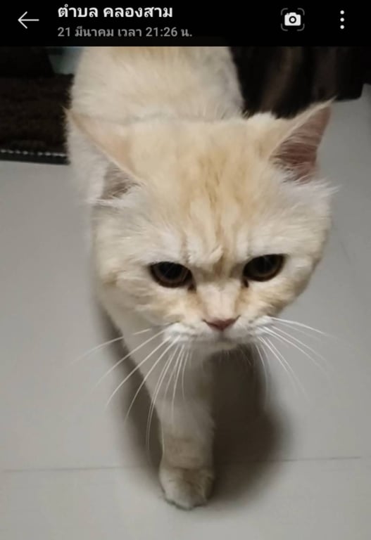 รอยตำหนิ: หนวดดำ1เส้นด้านขวาขี้กลัว กลัวเสียงรถมา ถ้ามีรถวิ่งผ่านไปมาจะหมอบ