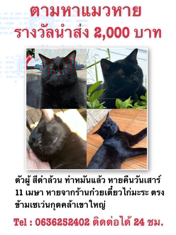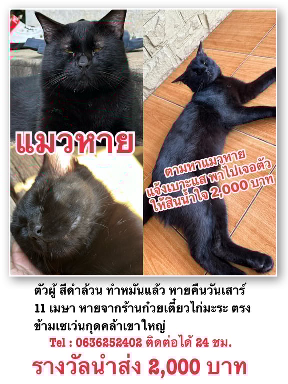 รอยตำหนิ: ตรงจมูกมีรอยขีดขี้กลัว กลัวคน กลัวเสียงรถ กลัวเสียงดัง