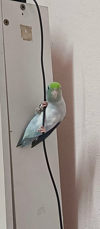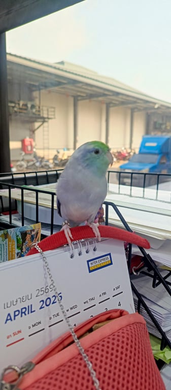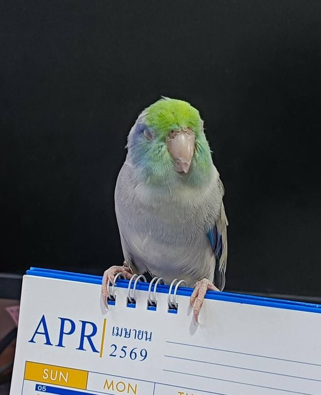 รอยตำหนิ: ปีกดำๆฟ้าๆ หัวสีเขียว มีห่วงขาสำหรับเกี่ยวสายจูงขึ้นมือง่าย อารมณ์ดี บางทีก็ดุกัด