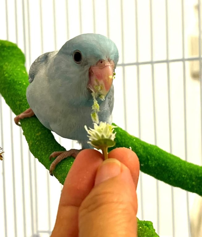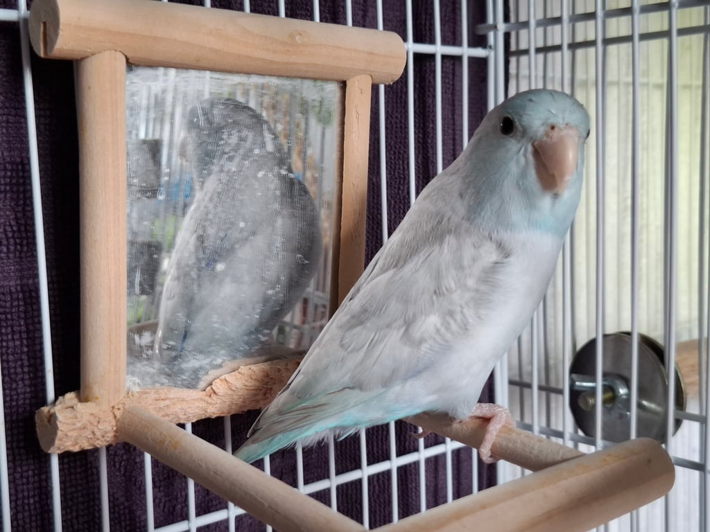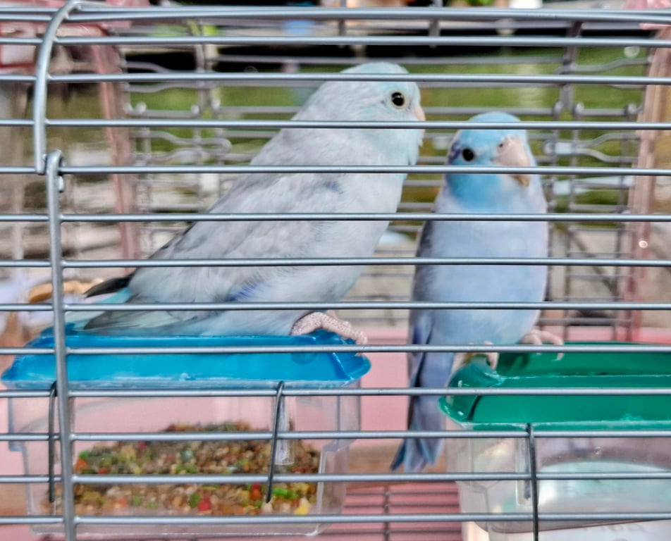 รอยตำหนิ: Happy สีฟ้าอ่อนพาย Richies สีฟ้าคิ้วสีขาวหิมะสลับน้ำเงินกินเก่ง ชอบบินที่สูง