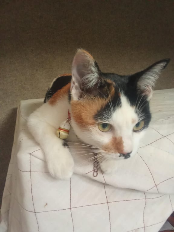 รอยตำหนิ: ที่หน้ามีปานดำปลอกคอสีแดง กระดิ่งสีทอง