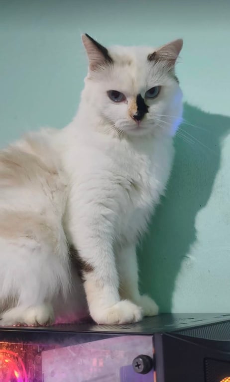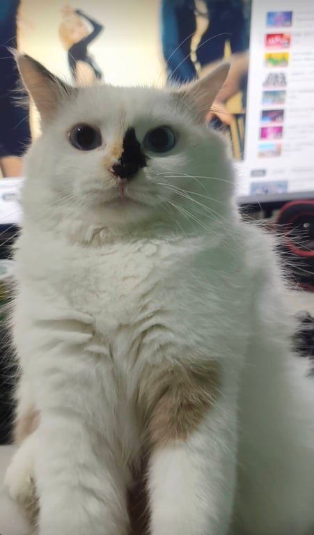 รอยตำหนิ: มีปานสีดำตรงที่จมูก ตาสีฟ้าน้องจะตัวสีขาว ตรงจมูกจะเป็นปานสีดำ ตาสีฟ้า ขนจะร่วงเยอะ หางฟู จะมีสีน้ำตาลอ่อนบนลำตัวและหางตามรูป นิสัยขี้กลัว
