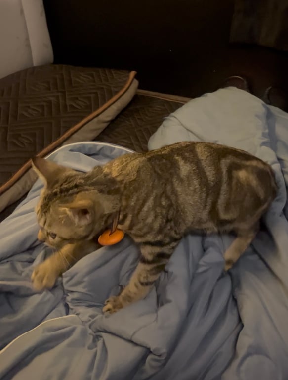 รอยตำหนิ: ปลอกคอสีม่วง ปลอกGpsสีส้มขี้ตกใจ ไม่ดุ ขี้เล่น