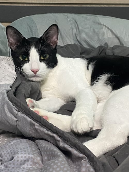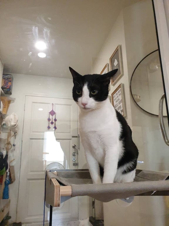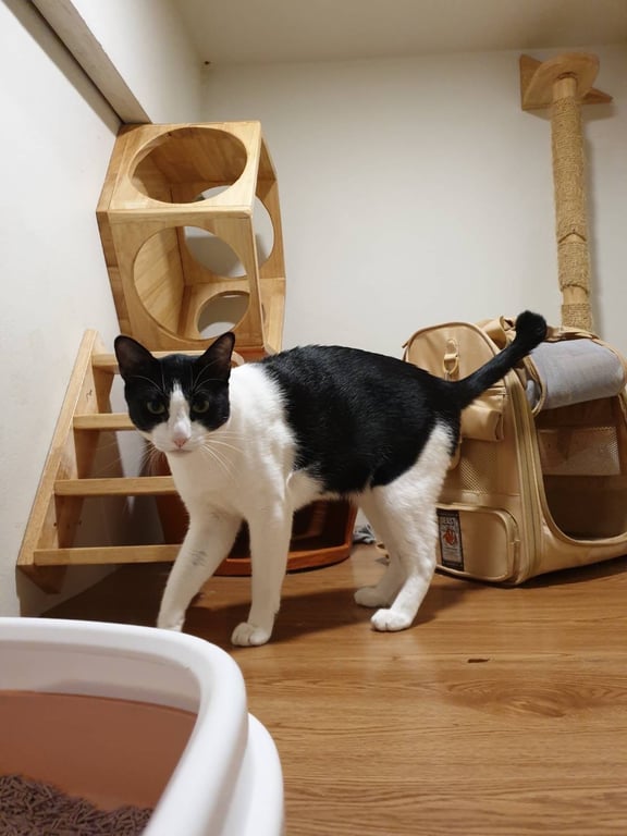 รอยตำหนิ: หางกวัก ขาซ้ายด้านในมีแต้มดำ มาร์คตรงหลังสีดำมองจากด้านบนเหมือนใส่เกาะอกเลี้ยงระบบปิด100% บ้าพลัง ไม่กลัวคน ชอบกระโดดให้คนอุ้ม แต่เล่นแรง ชอบกัดมือ เวลากลัวจะร้องเสียงหวานมากๆ